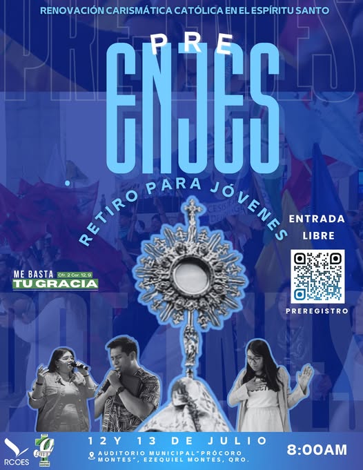 Este 12 y 13 de julio, más de 200 jóvenes de todos los rincones de la Diócesis de Querétaro se darán cita en nuestra parroquia para participar en el Pre-ENJES: un retiro que antecede al Encuentro Nacional de Jóvenes en el Espíritu Santo, cuya edición número 40 se celebrará en León, Guanajuato.